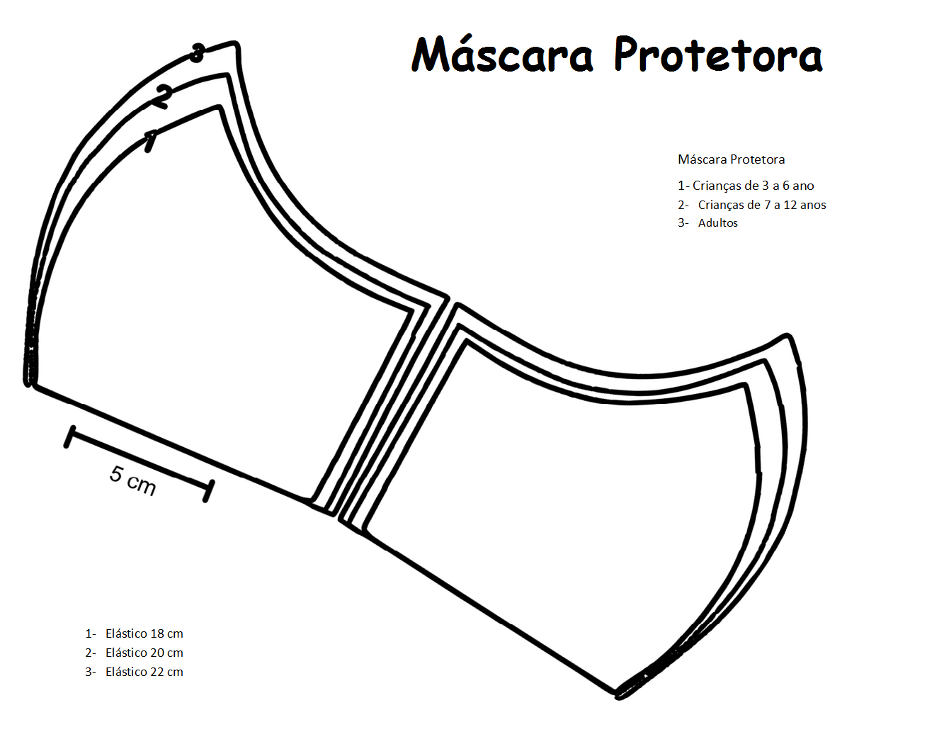 É importante que a máscara de tecido cubra todo o rosto para que a pessoa não seja contaminada, existem muitos moldes para a fabricação de máscara de tecido protetoras, por causa do tamanho da máscara que não é muito grande elas podem ser fabricadas em casa, com agulha, tecido e linha, basta recortar o tecido no formato do molde , no final deste artigo deixamos um modelo de molde para fabricação de máscara de tecido.